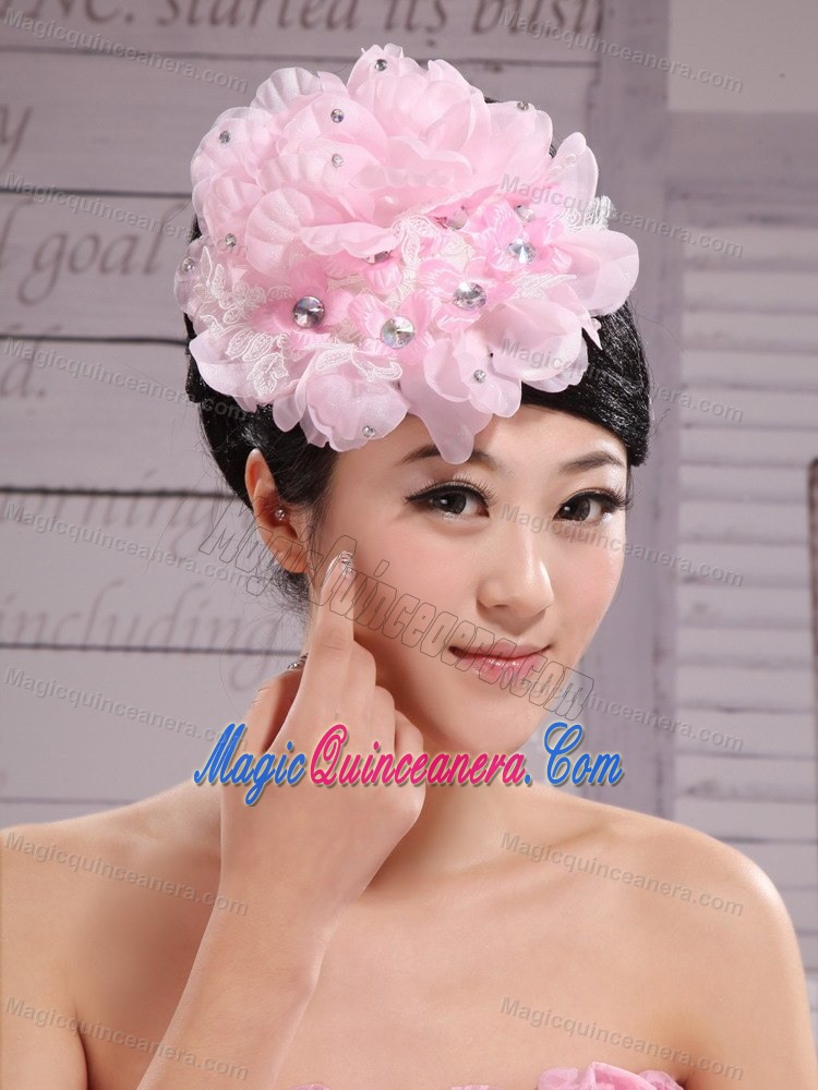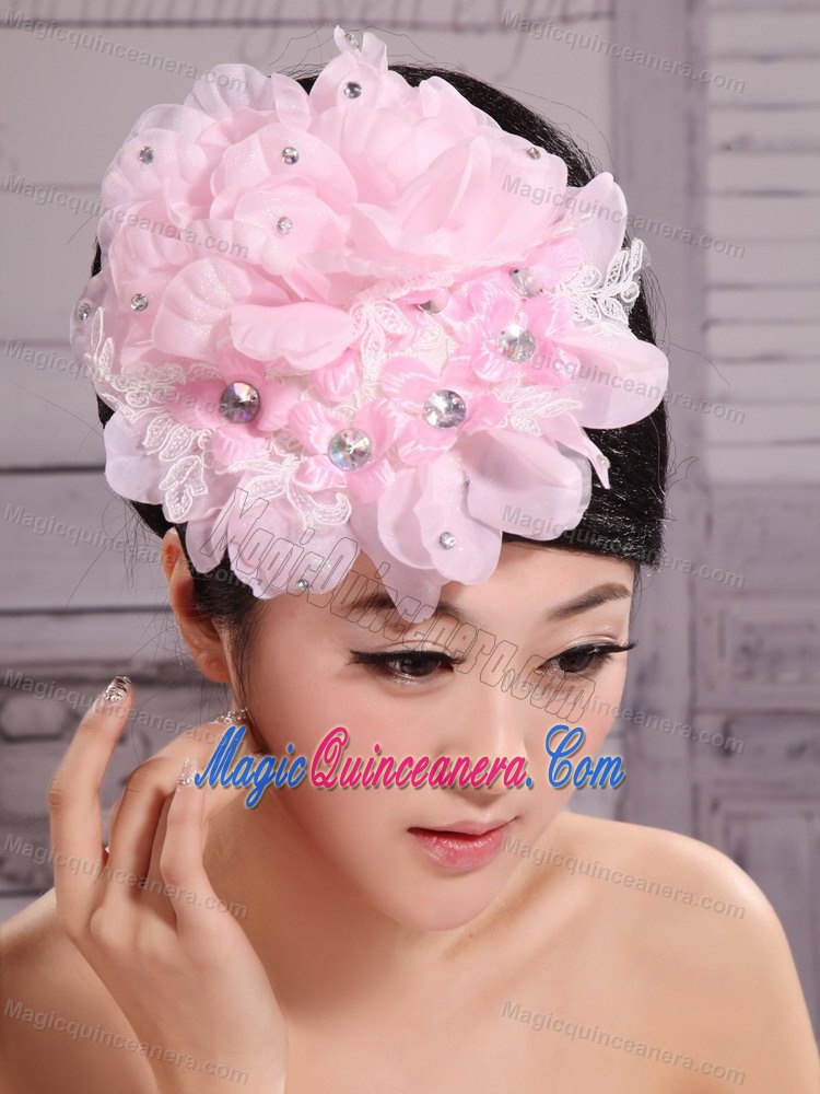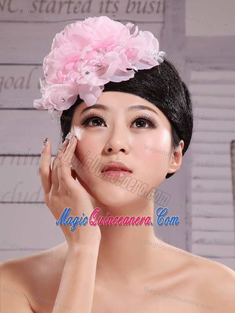 Pink Chiffon Beading Bud Silk Fascinators For Wedding