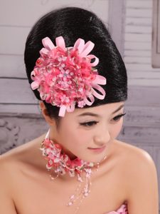 , Pink Satin Ribbon and Net Flower With Pearls For Party