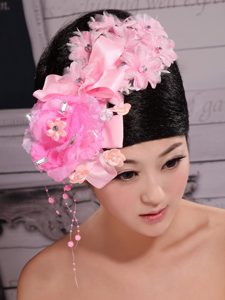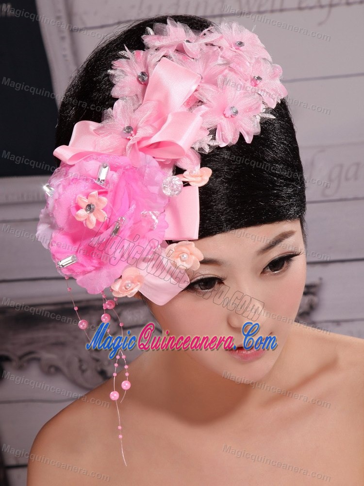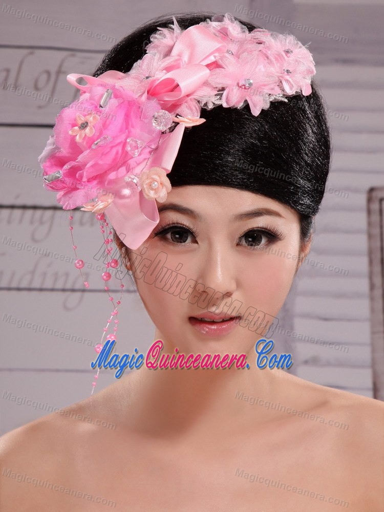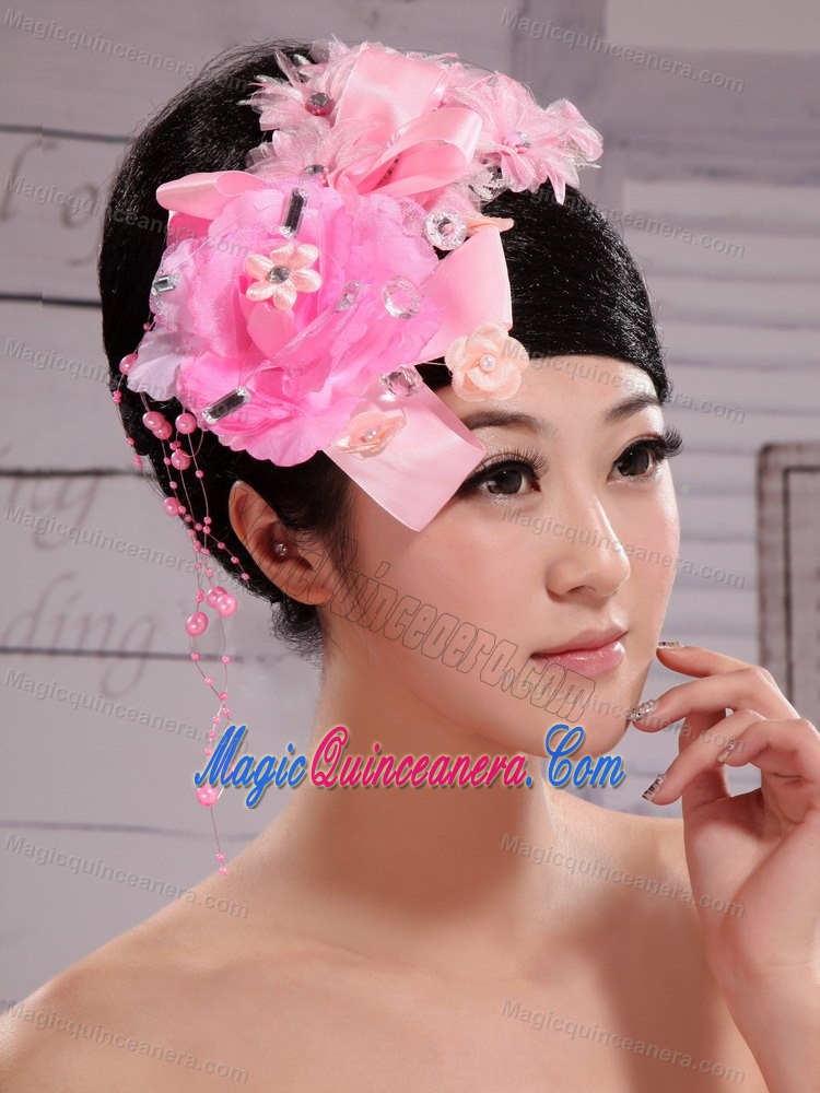 Pink Satin Ribbon Flowers With Beading For Wedding