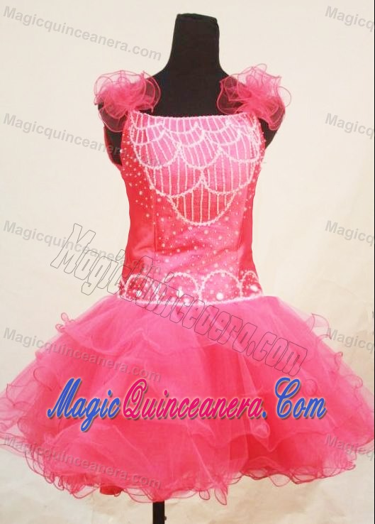 low price hot pink toddler pageant dresses in county kildare ireland, Pink Straps Mini-length Beaded Ruffled Little Girl Pageant Gowns
