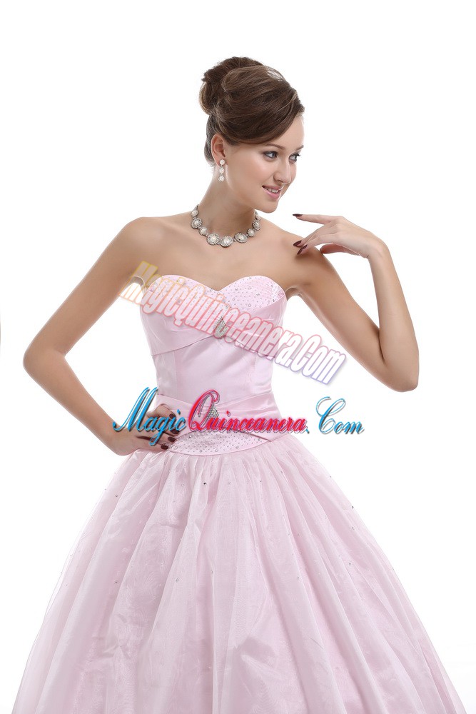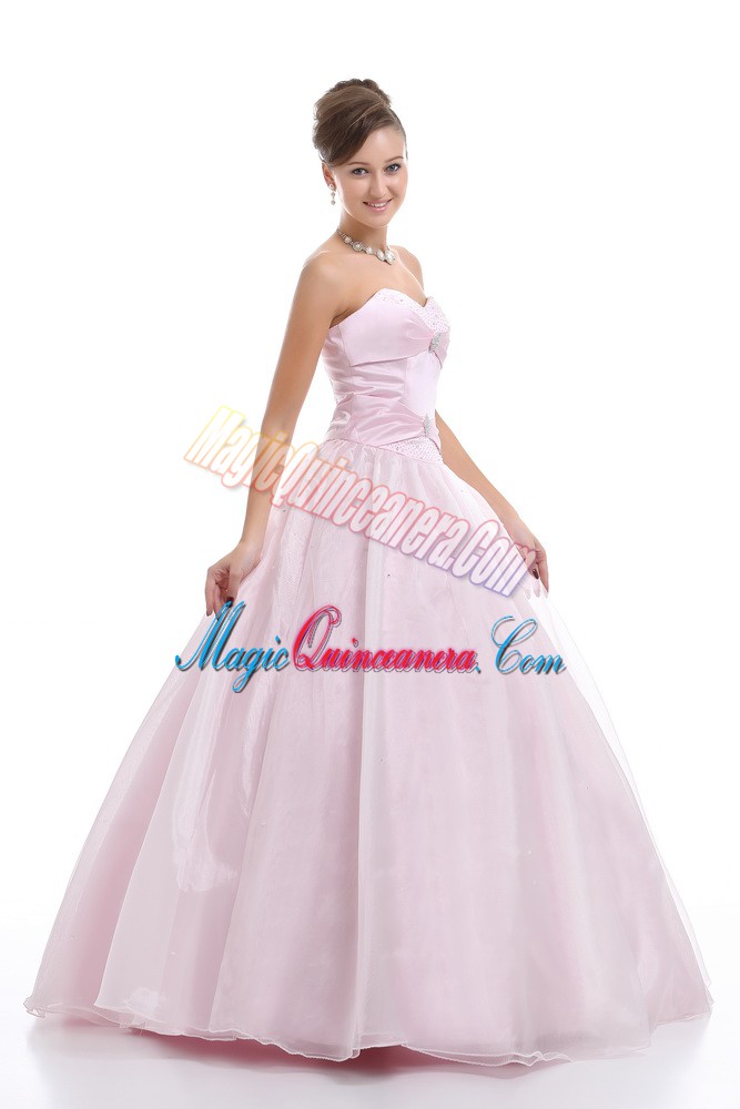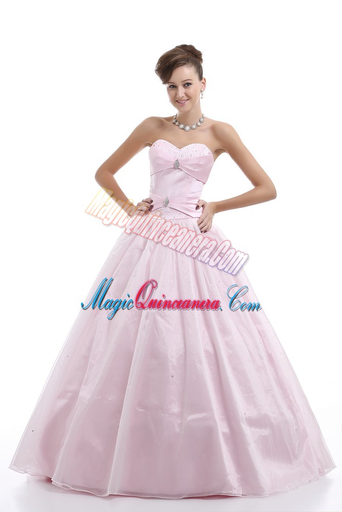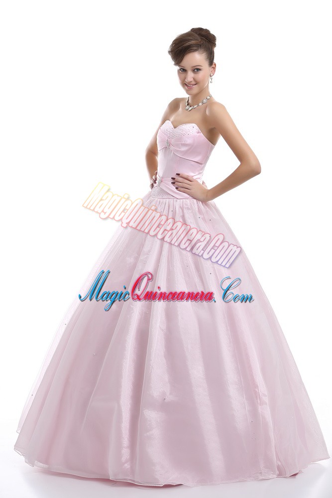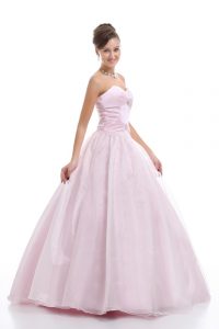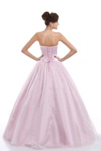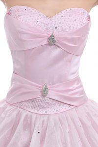 Pink Sweet 16 Quinceanera Dress Sweet 16 and Quinceanera with Beading Sweetheart Sleeveless Lace Up