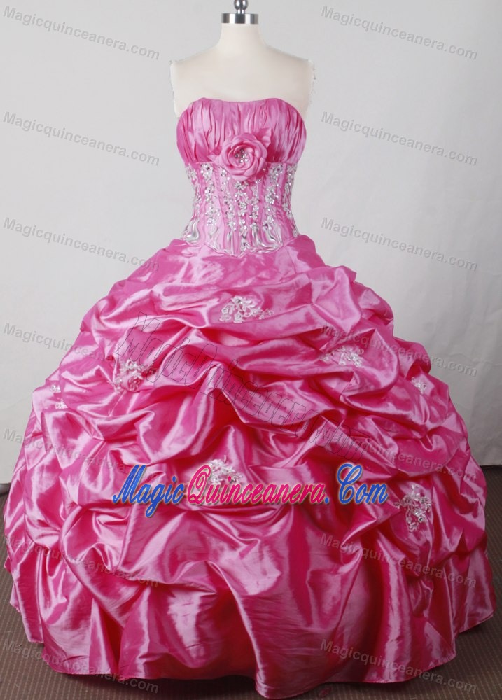 strapless appliqued quinceanera dresses in quillacollo, Pink Sweet Sixteen Dresses with Layered Ruffles and Hand Flowers