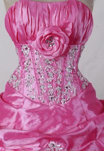 discount clearance hot pink quince dresses with pick ups and flower,
