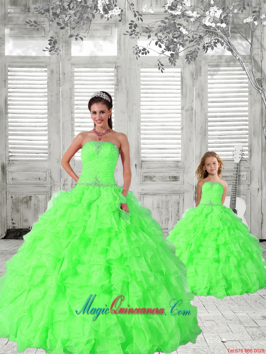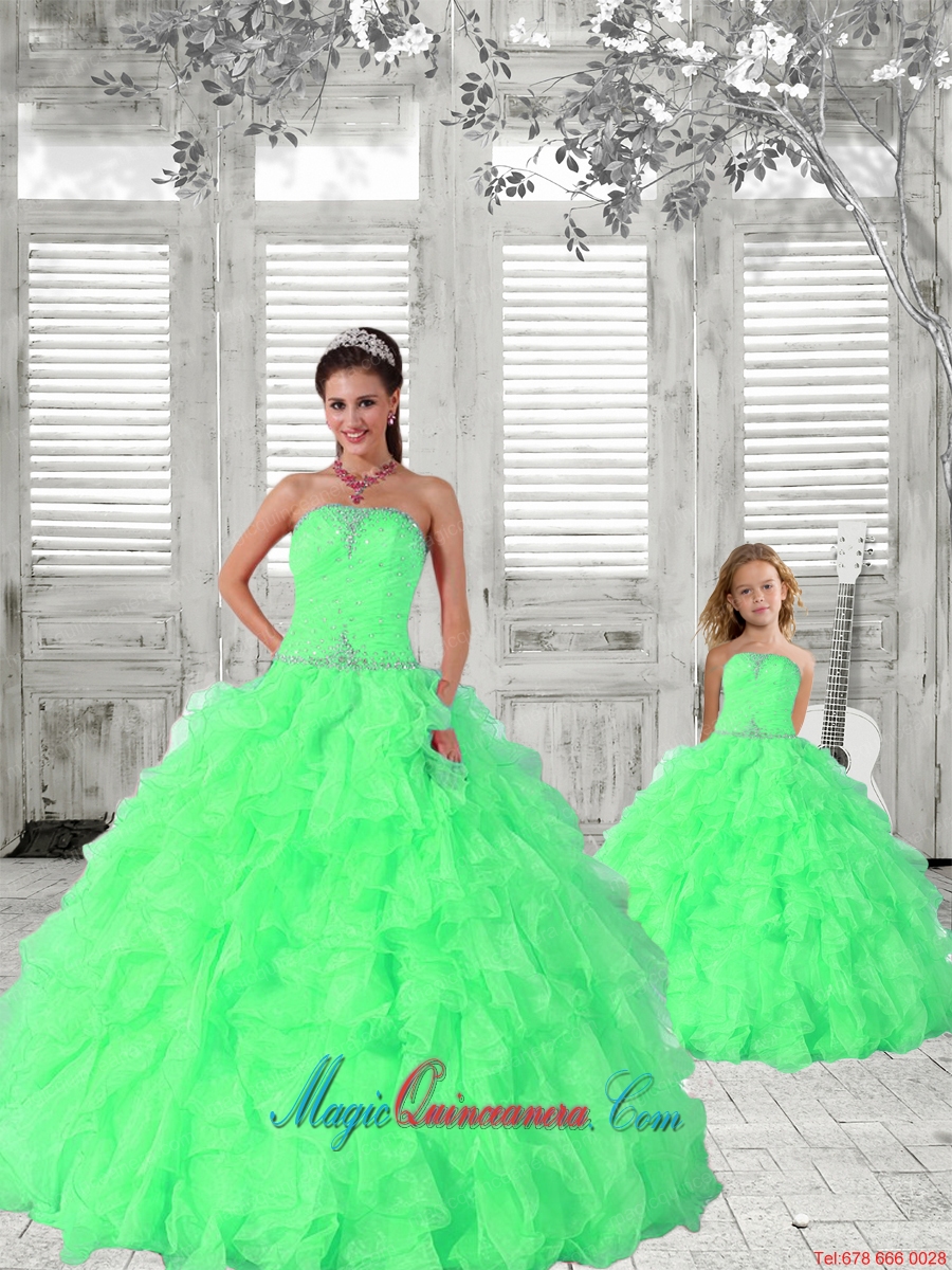 , Popular Beading and Ruching Princesita Dress in Green for 2015