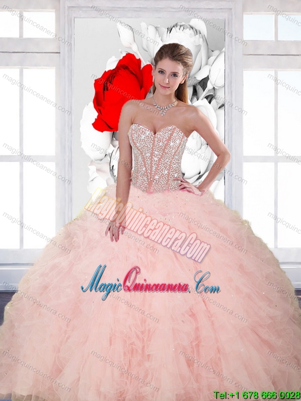 , Popular Beading and Ruffles Sweetheart Quinceanera Dresses for 2015 Spring