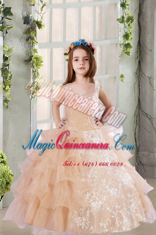 Popular Champagne Square Neckline Lace and Ruffled Layers Evening Gowns Sleeveless Zipper