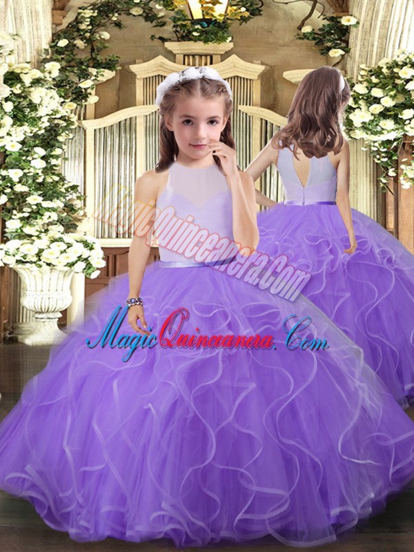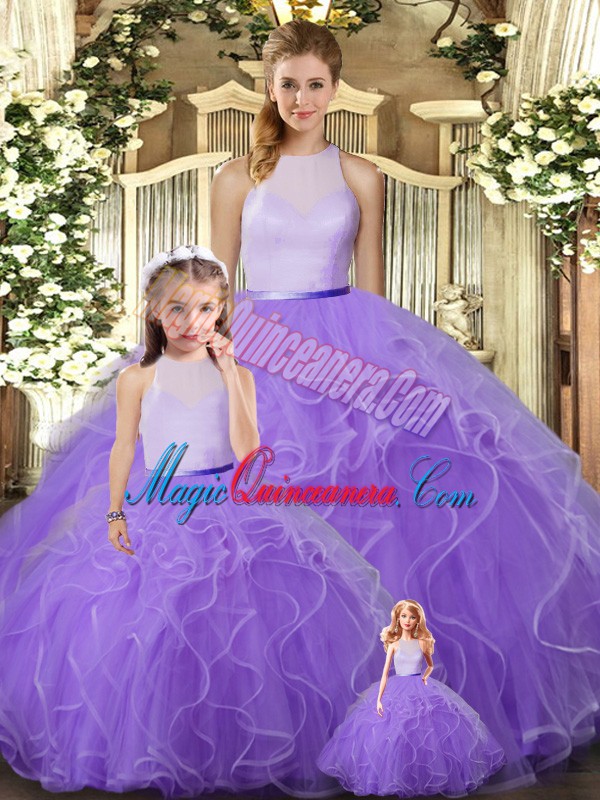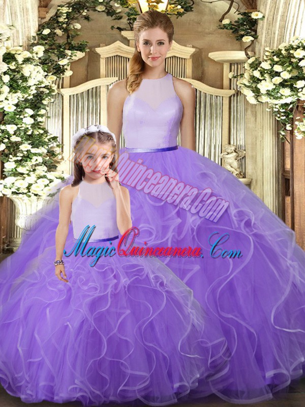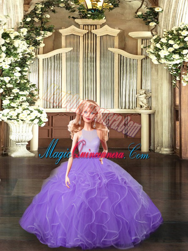 Popular Ruffles 15th Birthday Dress Lavender Backless Sleeveless Floor Length