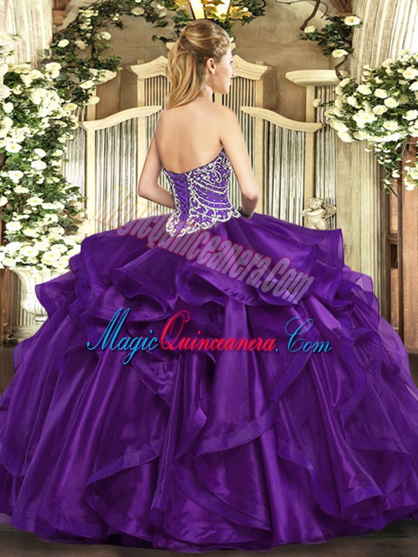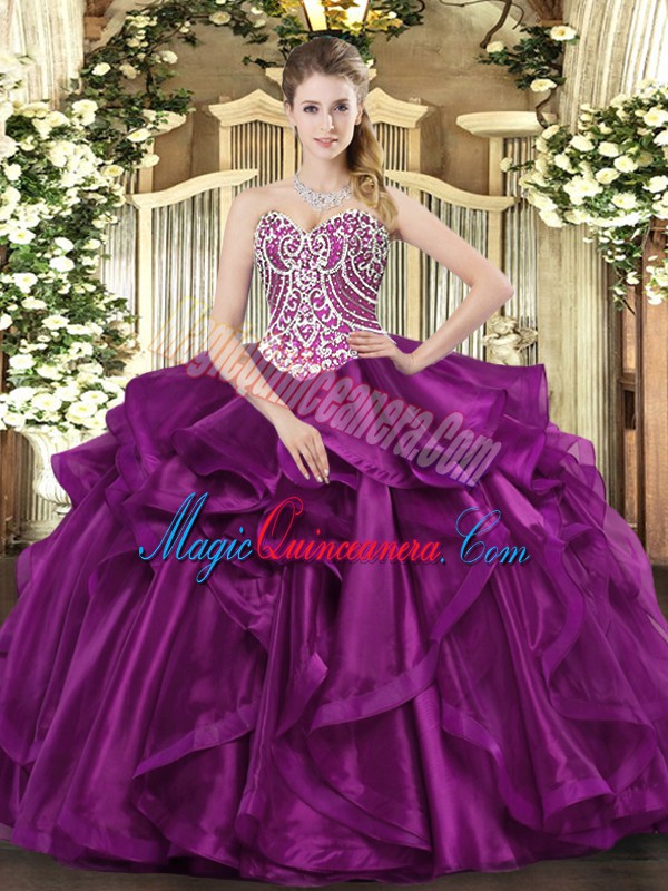 Popular Sleeveless Floor Length Beading and Ruffles Lace Up Quinceanera Dress with Fuchsia - Magic Quinceanera