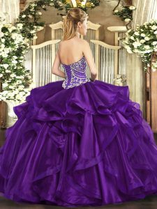 Popular Sleeveless Floor Length Beading and Ruffles Lace Up Quinceanera Dress with Fuchsia