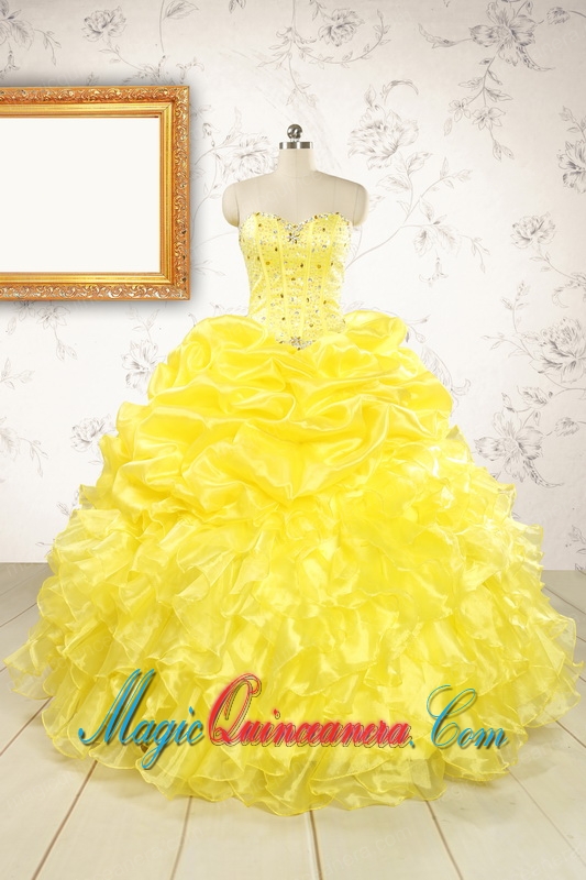 , Popular Sweetheart Yellow Quinceanera Dresses with Beading