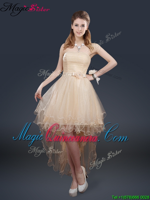, Pretty 2016 High Low Dama Dresses with Belt for Fall