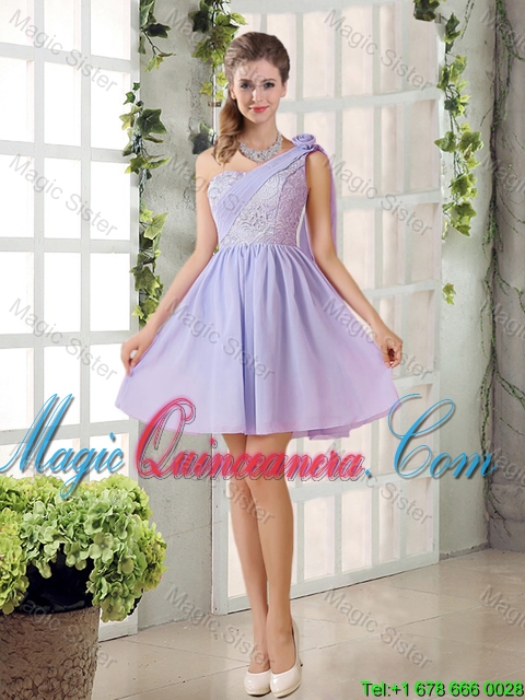 Pretty A Line One Shoulder Dama Dresses with Hand Made Flowers
