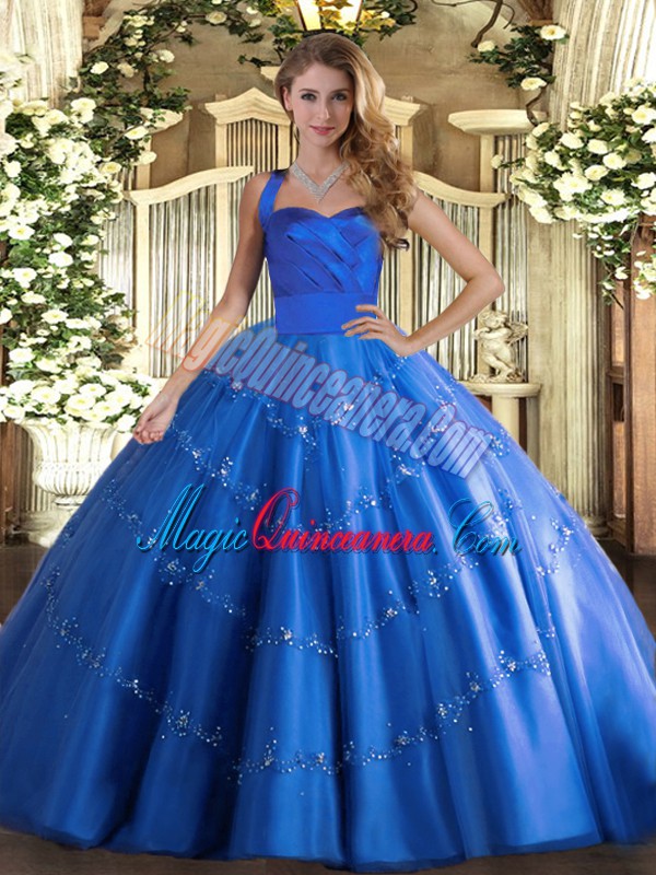 Pretty Appliques Sweet 16 Quinceanera Dress Blue Lace Up Sleeveless Floor Length