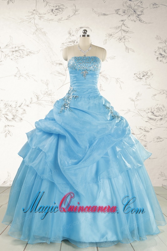 Pretty Aqua Blue Quinceanera Dresses with Appliques for 2015