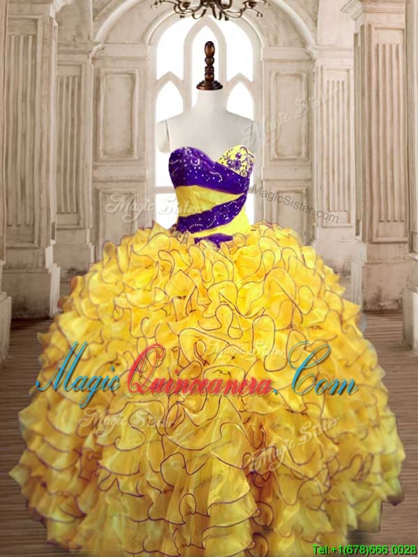 , Pretty Ball Gown Yellow Quinceanera Dress with Beading and Ruffles