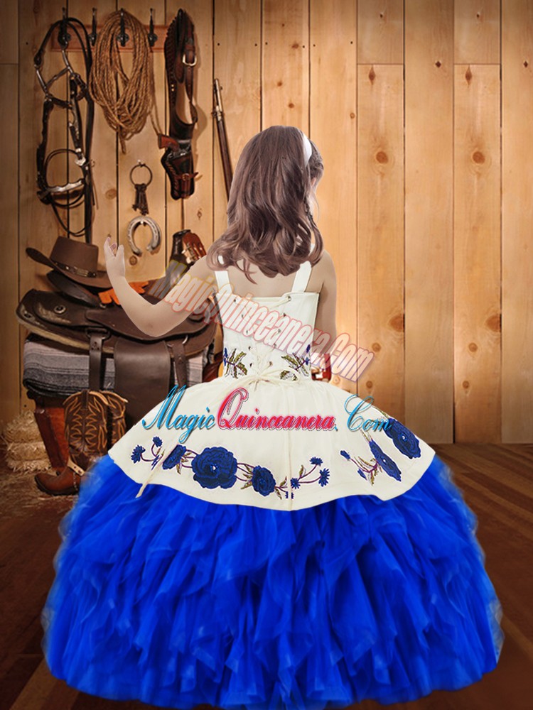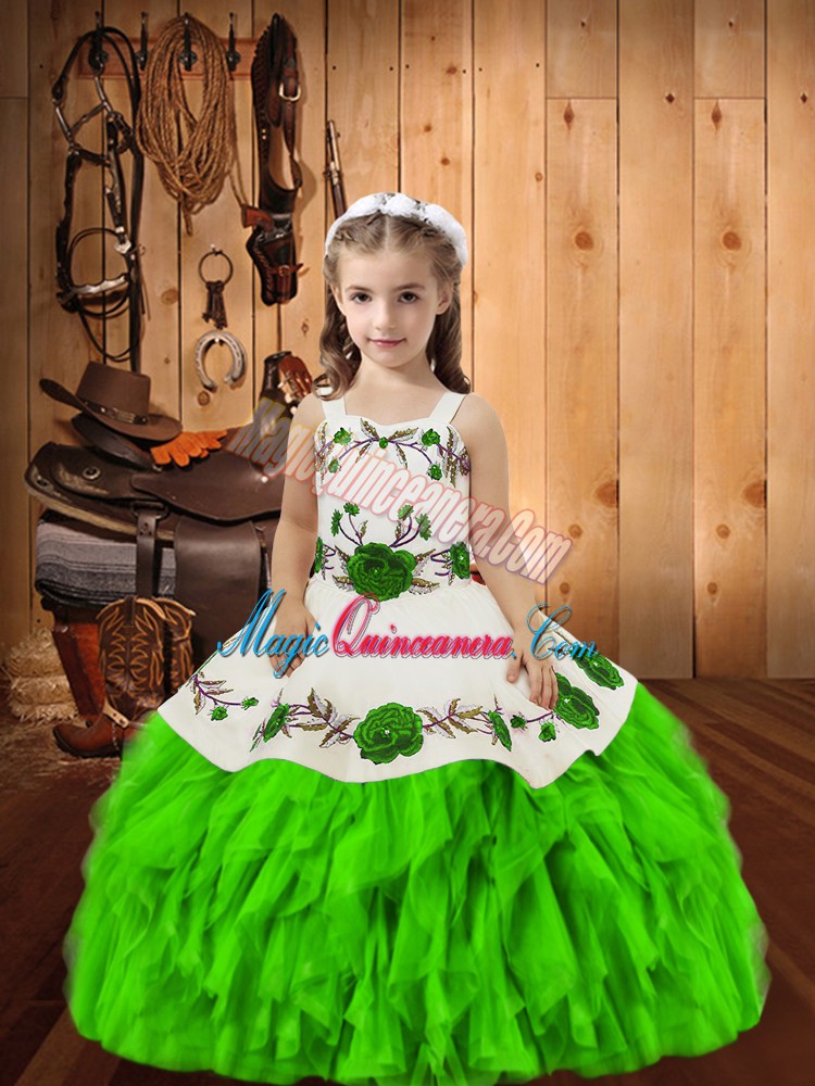 Pretty Ball Gowns Organza Straps Sleeveless Embroidery and Ruffles Floor Length Lace Up Little Girls Pageant Dress Wholesale