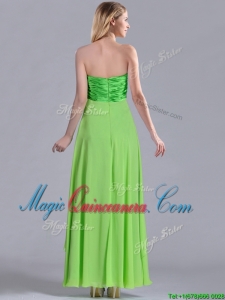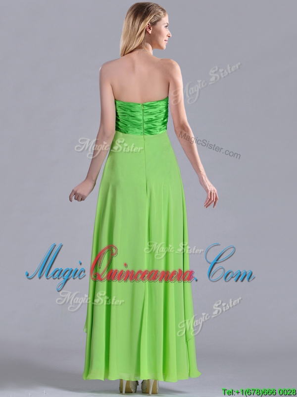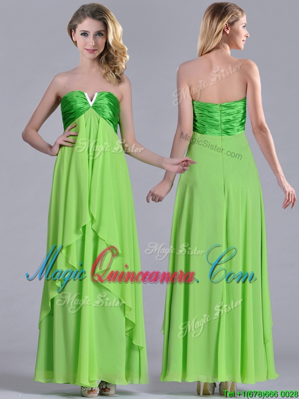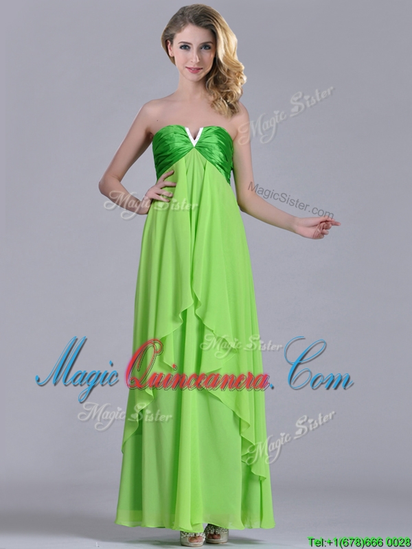 , Pretty Beaded Decorated V Neck Spring Green Dama Dress in Ankle Length