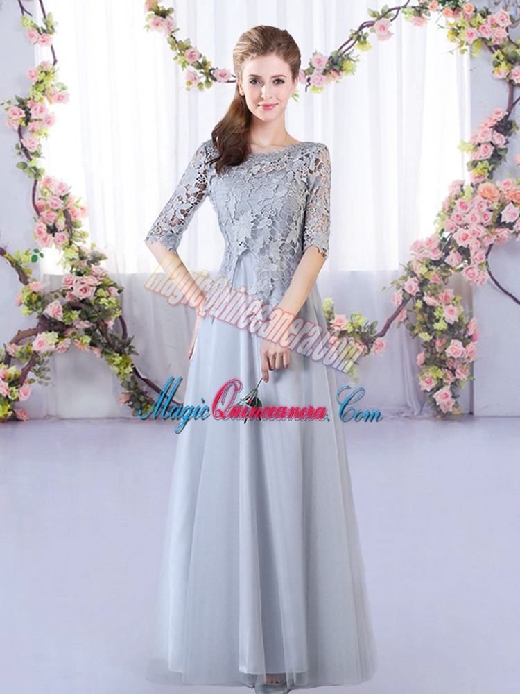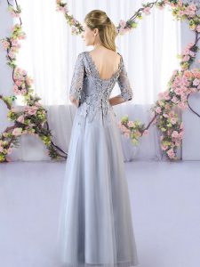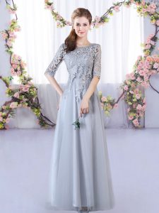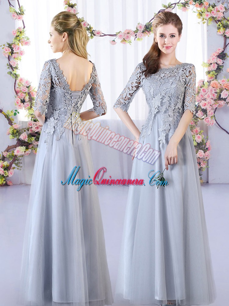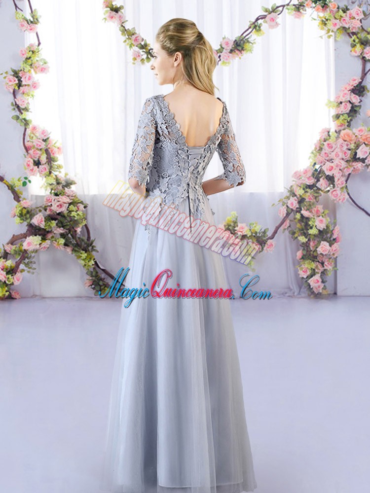 Pretty Floor Length Empire Half Sleeves Grey Vestidos de Damas Lace Up