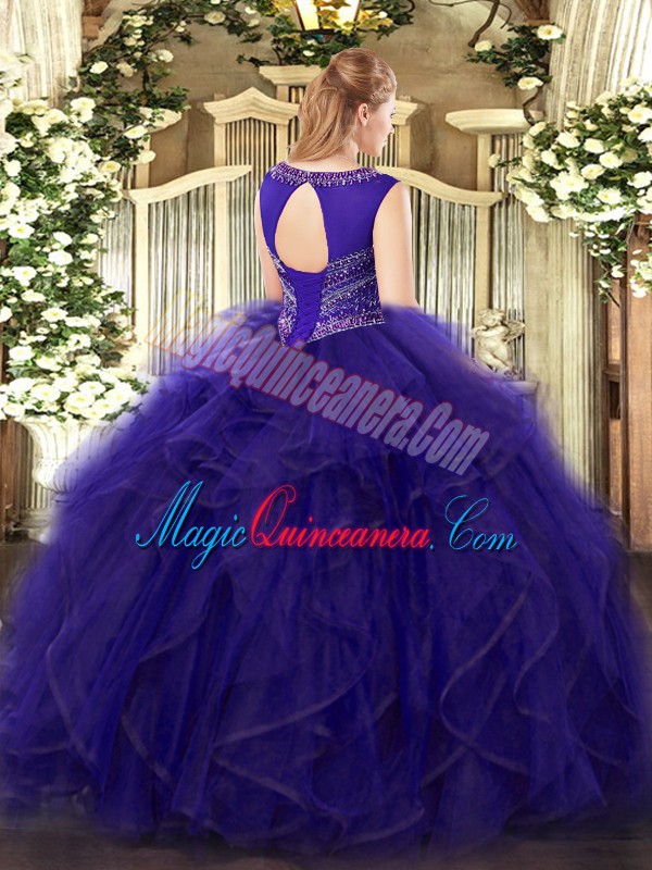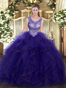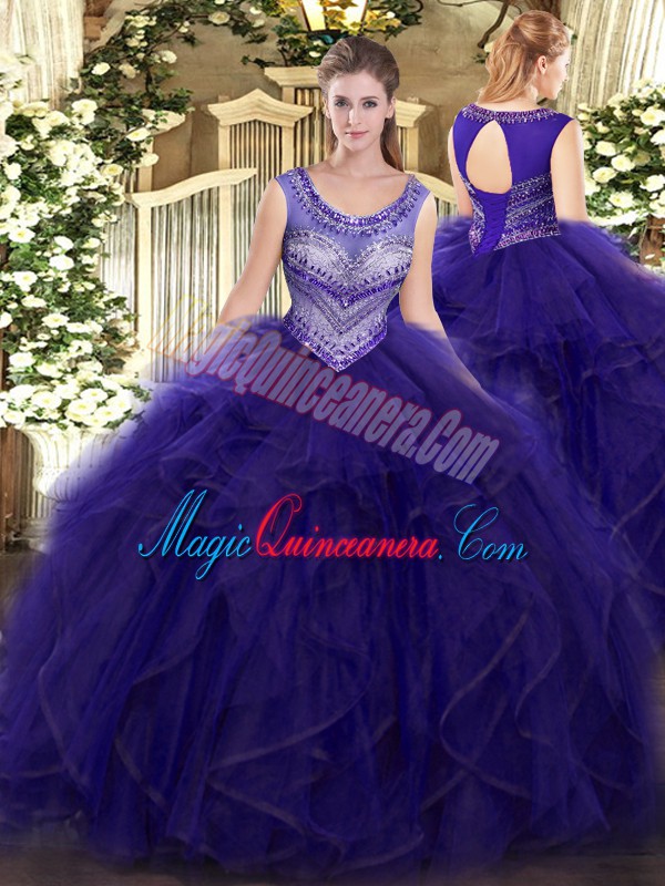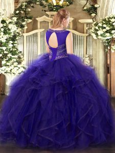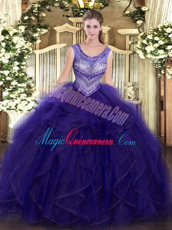 , Pretty Floor Length Purple Quinceanera Gown Scoop Sleeveless Lace Up