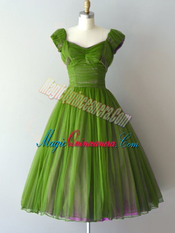 Pretty Green Zipper V-neck Ruching Quinceanera Court Dresses Chiffon Cap Sleeves