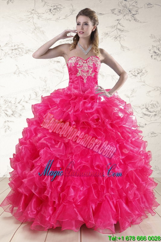 , Pretty Hot Pink Sweet 15 Dresses with Appliques and Ruffles