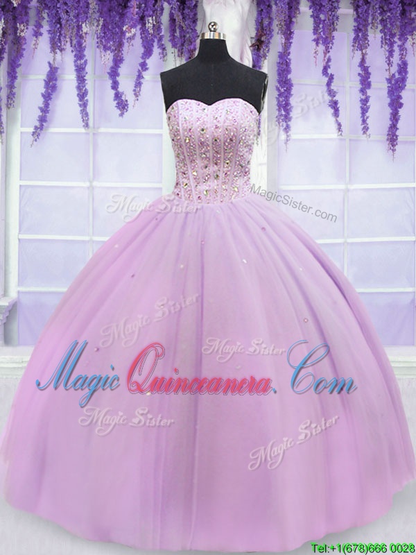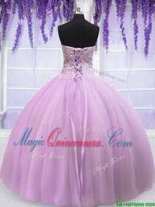Pretty Lilac Ball Gowns Tulle Sweetheart Sleeveless Beading Floor Length Lace Up 15th Birthday Dress