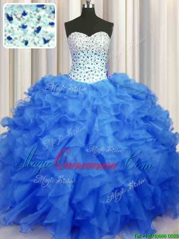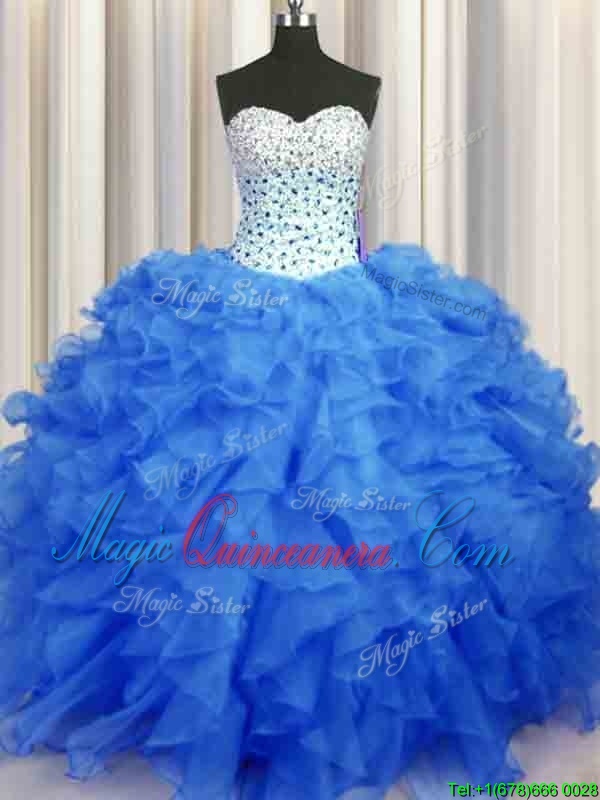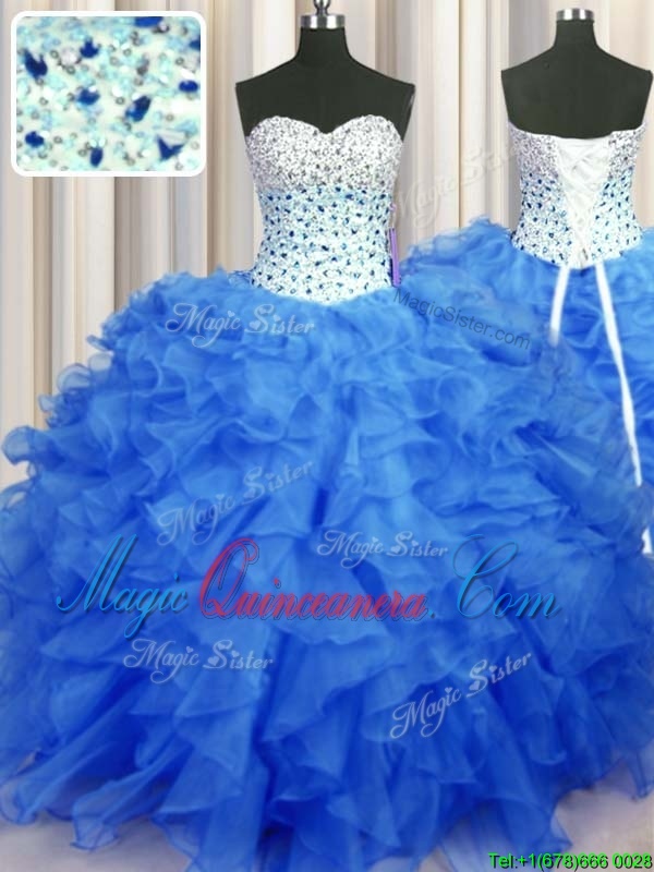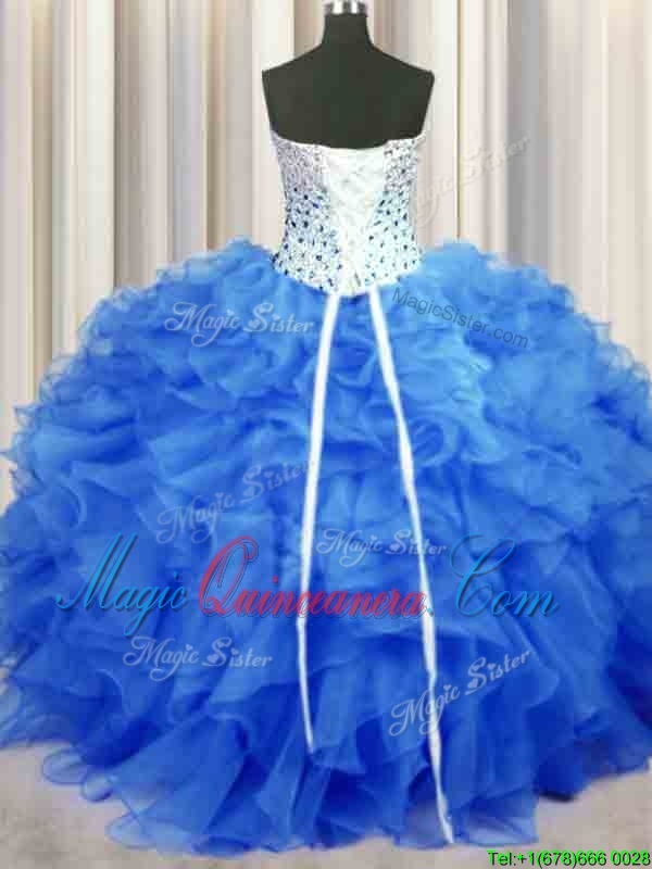 , Pretty Organza Sleeveless Floor Length 15 Quinceanera Dress and Beading and Ruffles