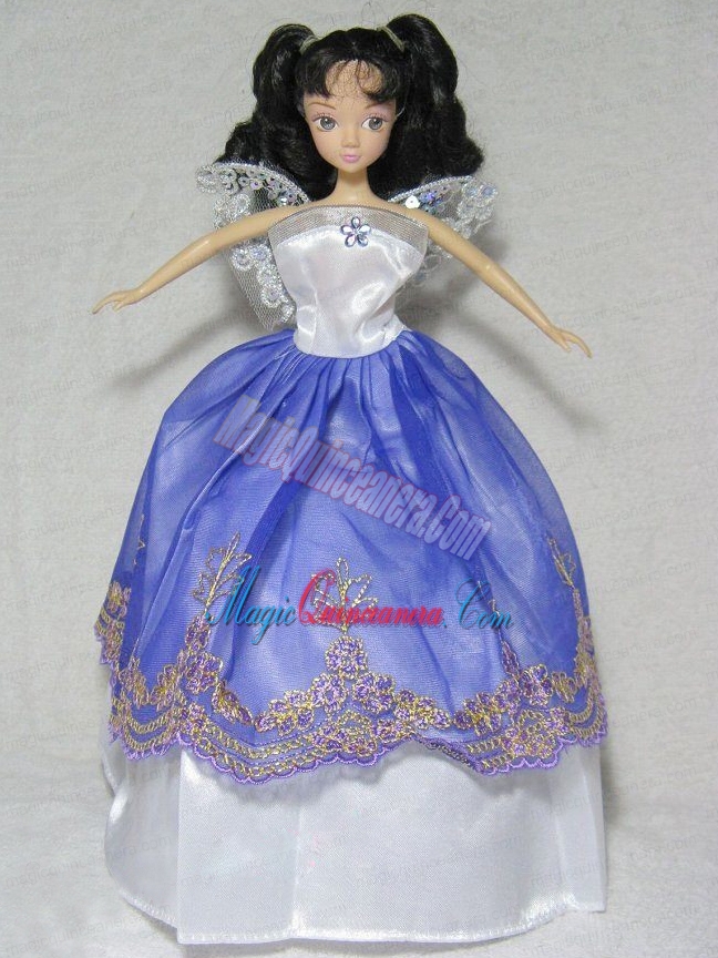 , Pretty Royal Blue and White Gown For Barbie Doll