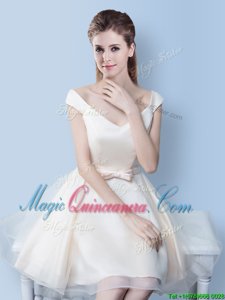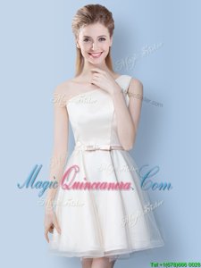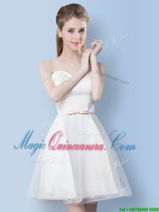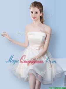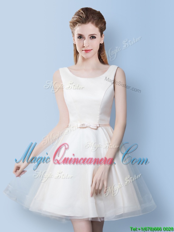 Pretty Scoop White Tulle Lace Up Vestidos de Damas Sleeveless Mini Length Lace and Bowknot