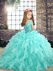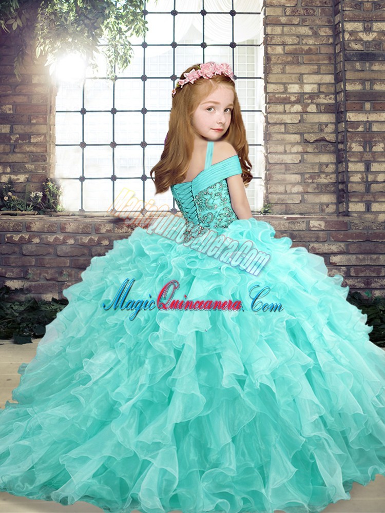 Pretty Sleeveless Floor Length Beading and Ruffles Lace Up Custom Made Pageant Dress with
