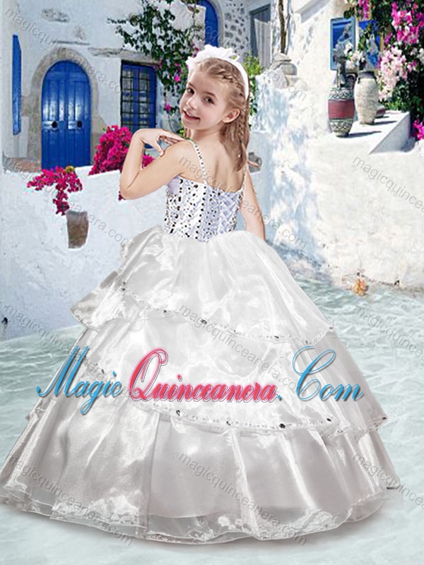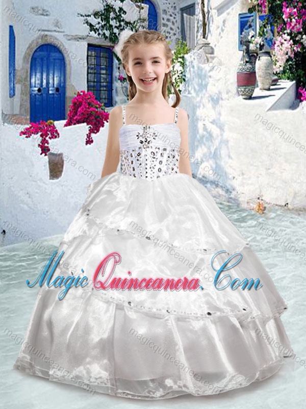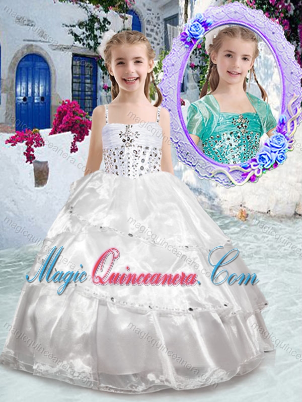 Pretty Spaghetti Straps Ball Gown Beading Little Girl Pageant Dresses