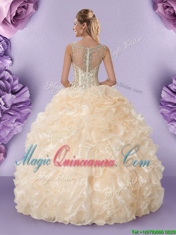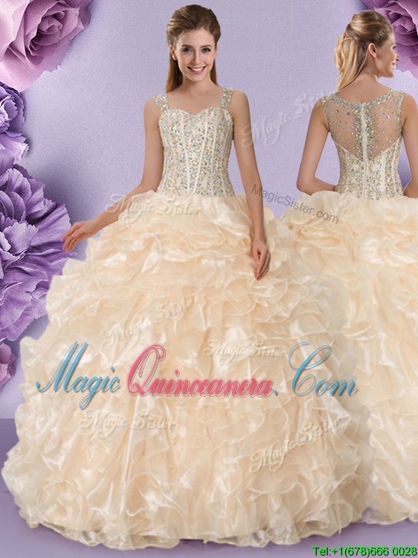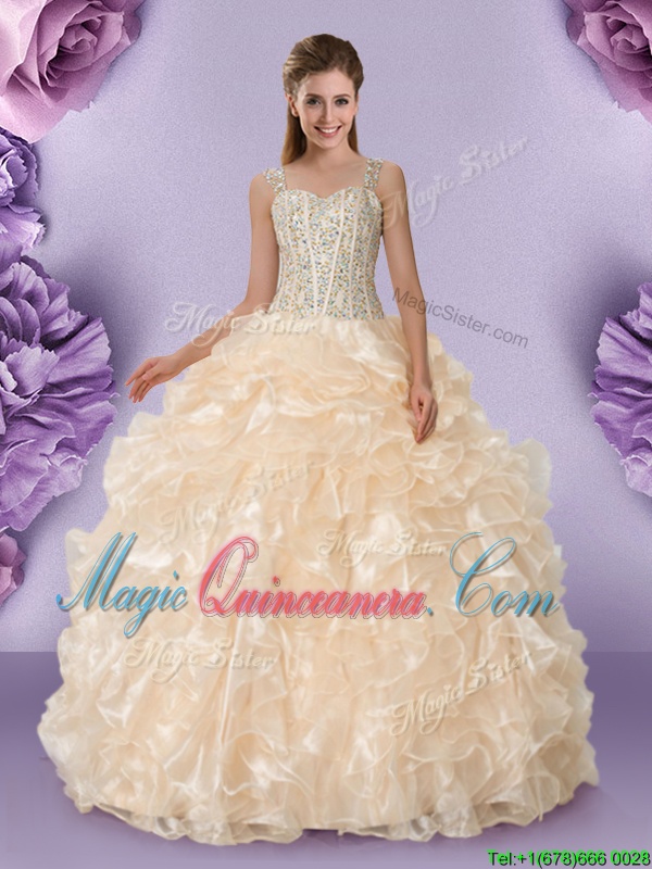 , Pretty Straps Sleeveless Zipper 15 Quinceanera Dress Champagne Organza