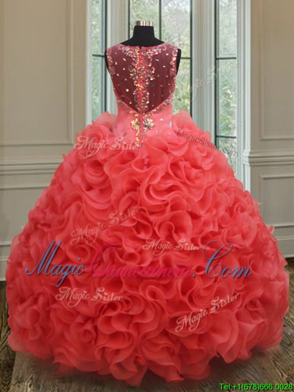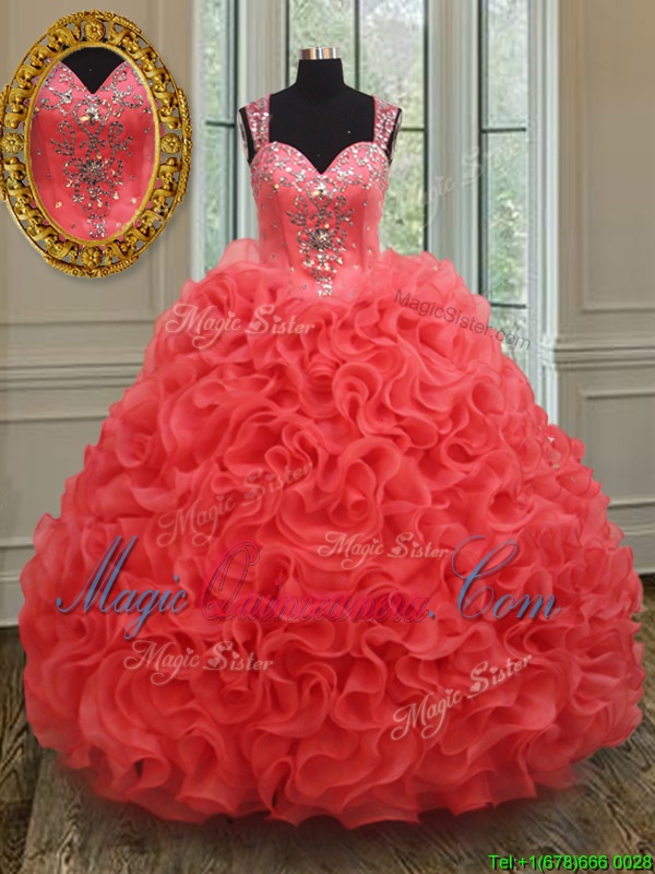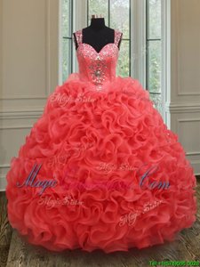 Pretty Straps Straps Coral Red Sleeveless Floor Length Beading Zipper Ball Gown Prom Dress