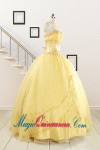 Pretty Yellow Quinceanera Dresses with Appliques and Beading For 2015