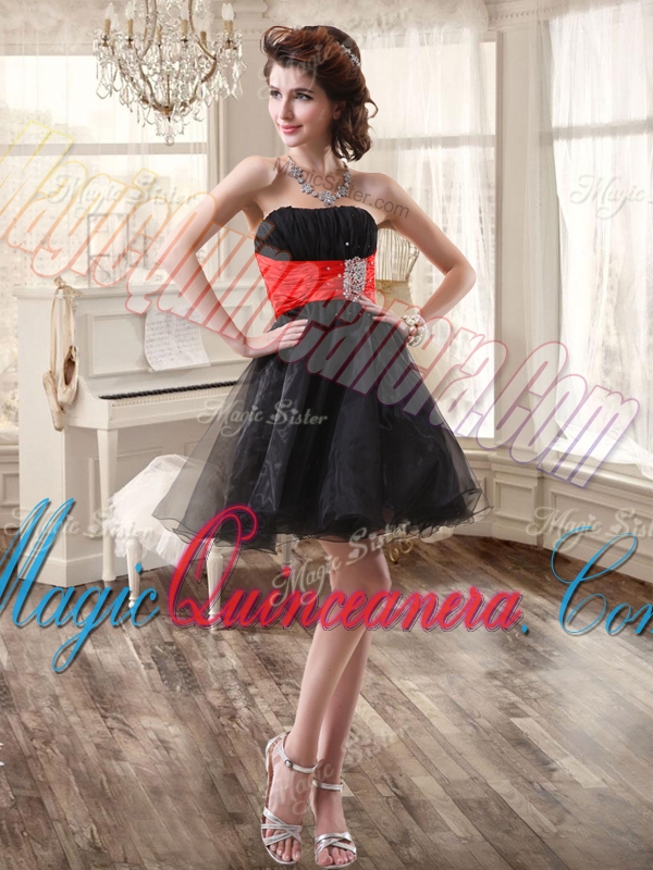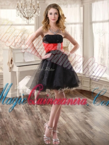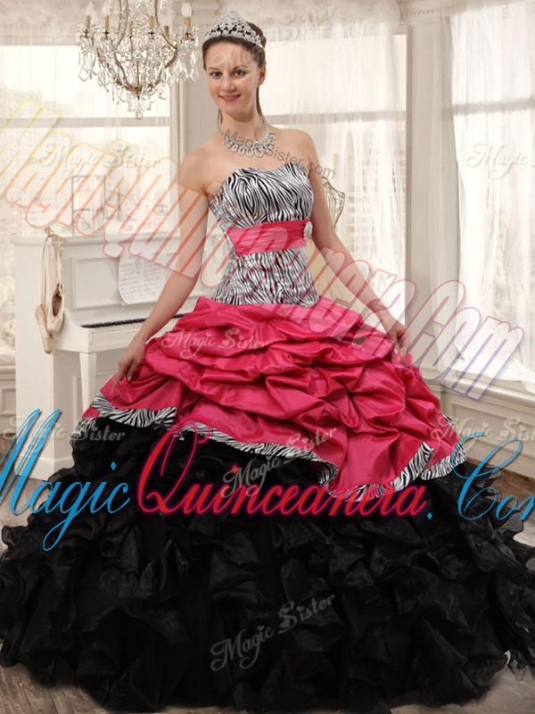 Pretty Zebra Ruffled Red and Black Quinceanera Dress and Beaded Short Dama Dresses