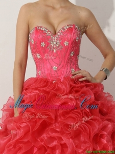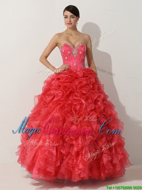Promotional Princess Red Quinceanera Gown with Beading and Ruffles