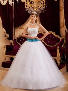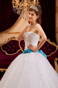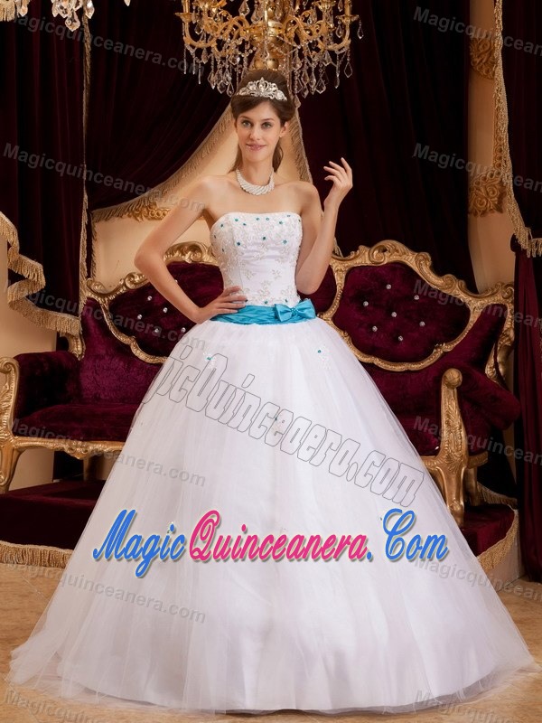 Pure Strapless Beading Quinceanera Dresses Tulle and Satin with Bow