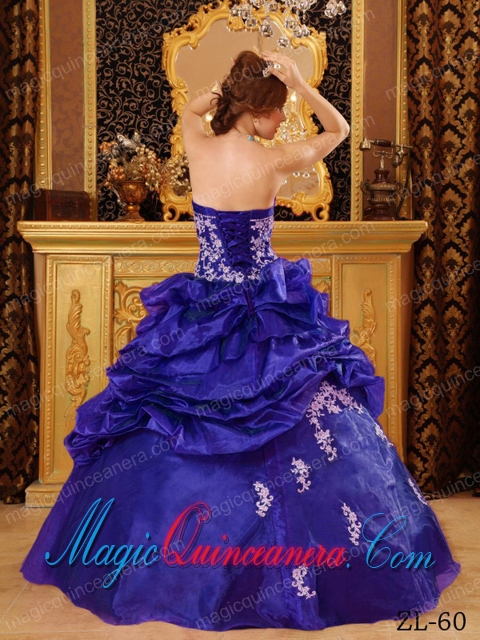 Purple Ball Gown Strapless Floor-length Organza Appliques Cute Quinceanera Dress