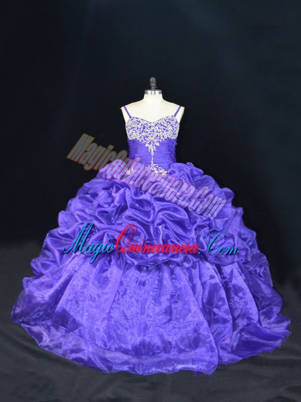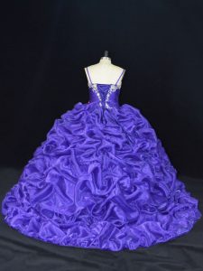 Purple Ball Gowns Beading and Pick Ups Quinceanera Gowns Lace Up Organza Sleeveless