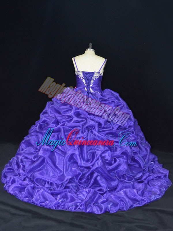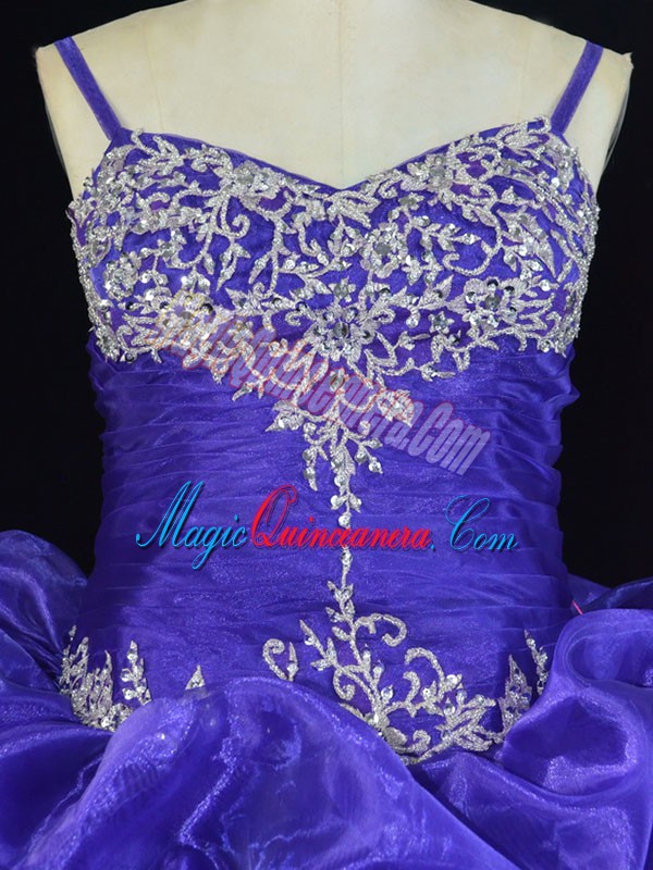 , Purple Ball Gowns Beading and Pick Ups Quinceanera Gowns Lace Up Organza Sleeveless