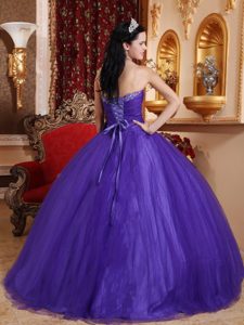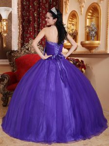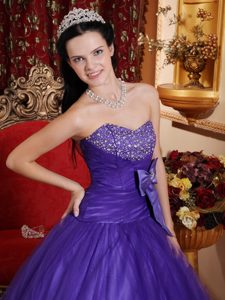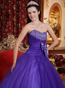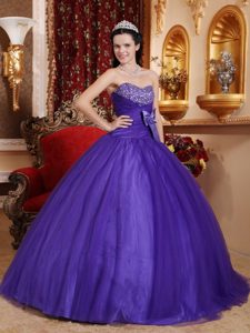 Purple Beaded Floor-length Quince Dresses with Bowknot in Ballycastle