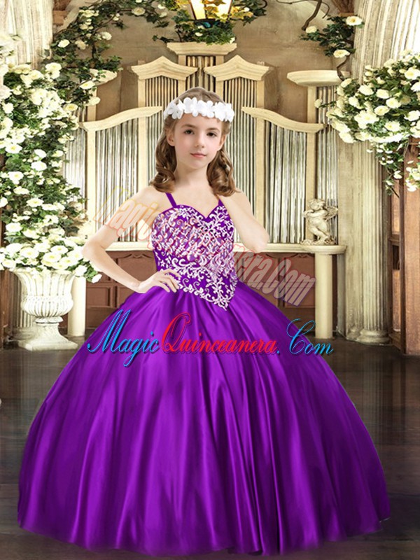 Purple Pageant Dress for Teens Party and Quinceanera with Beading Straps Sleeveless Lace Up