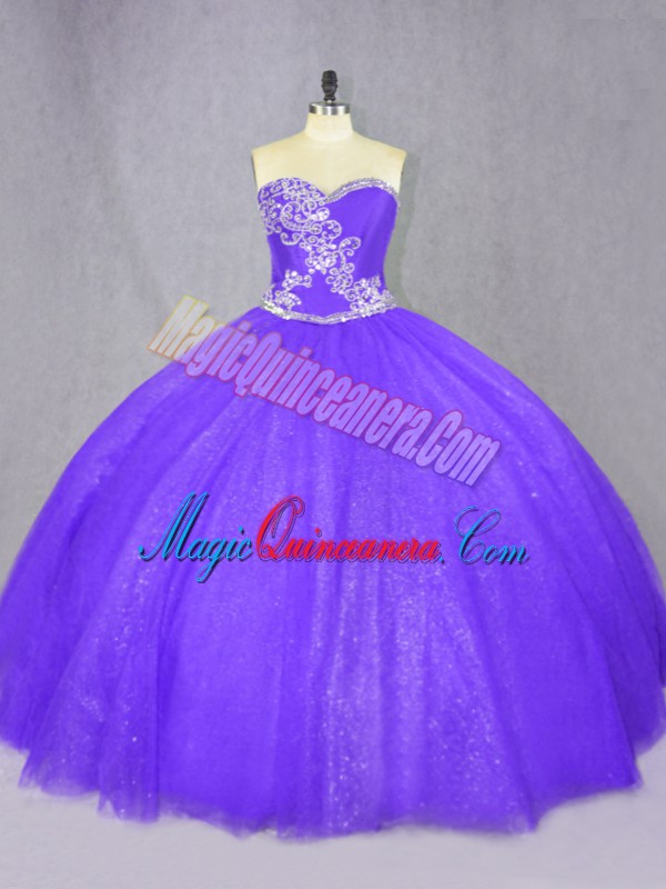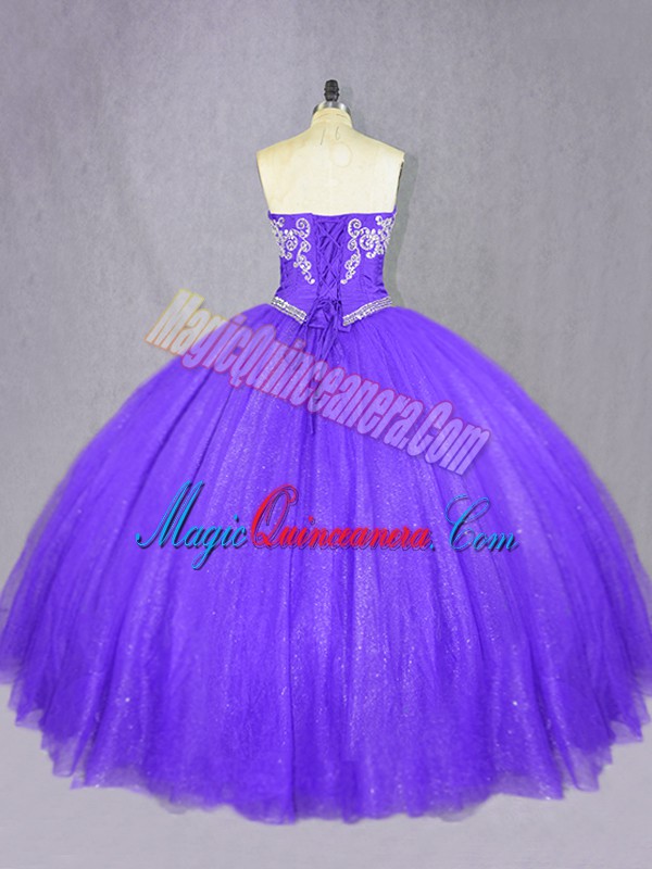 Purple Quince Ball Gowns Sweet 16 and Quinceanera with Beading Sweetheart Sleeveless Lace Up