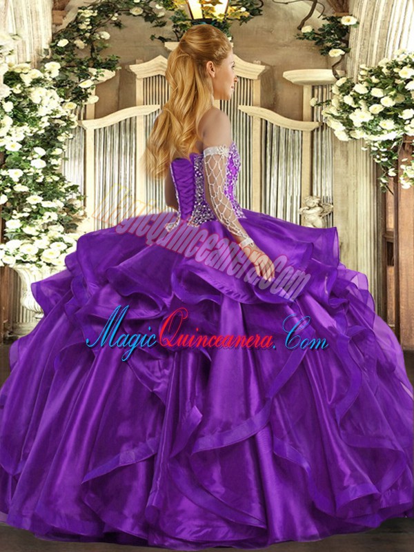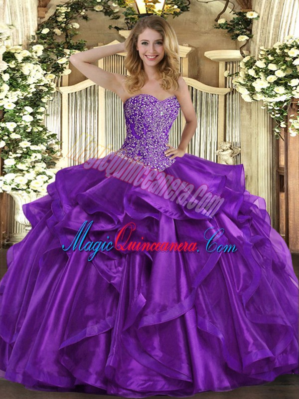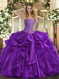 Purple Sleeveless Beading and Ruffles Floor Length Sweet 16 Dresses