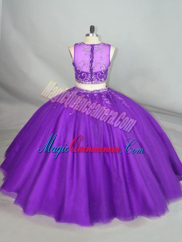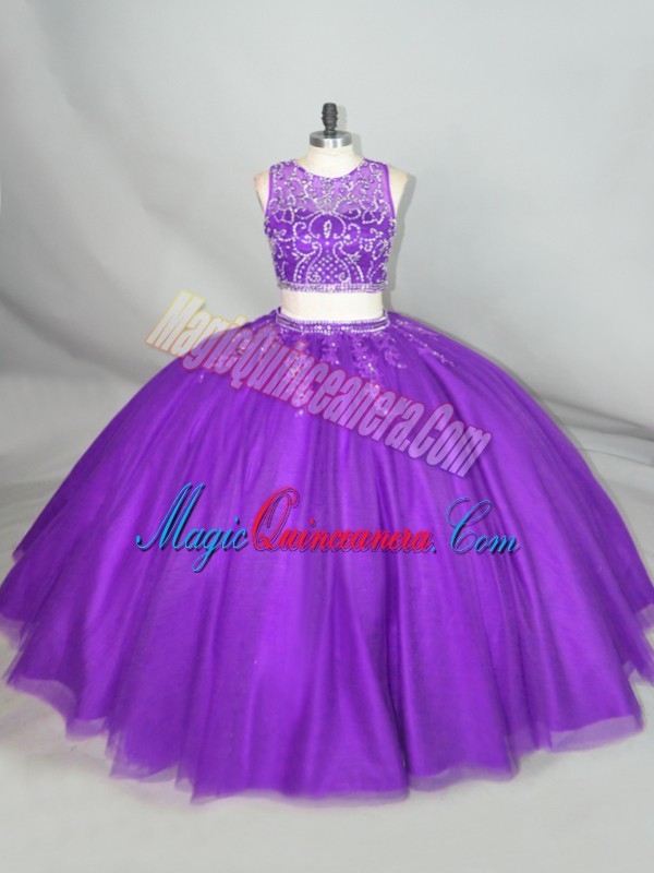 Purple Sleeveless Beading Zipper Sweet 16 Dresses