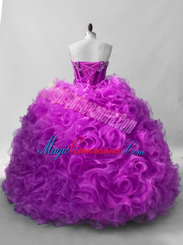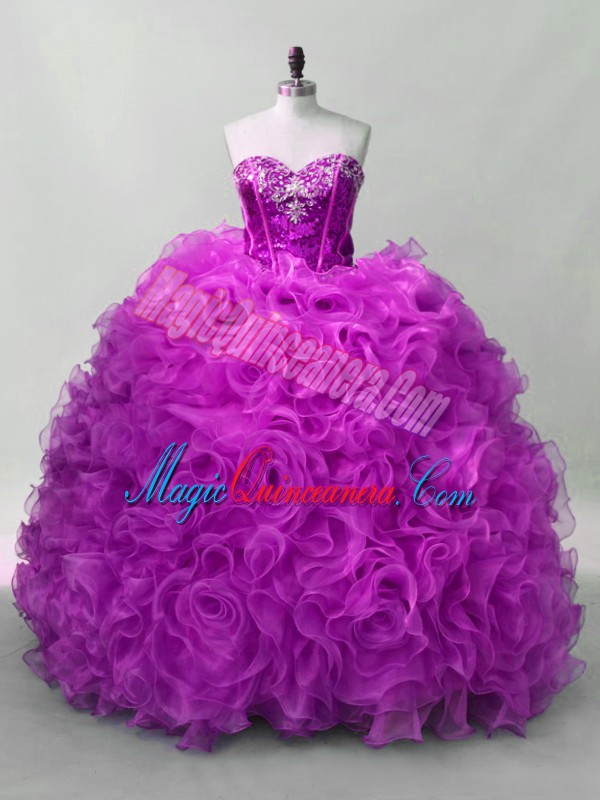 Purple Sleeveless Sequins Floor Length Quinceanera Dress