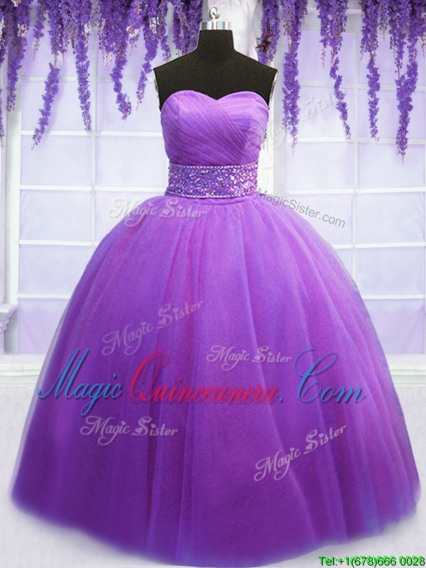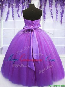 Purple Sweetheart Lace Up Belt Quinceanera Dress Sleeveless