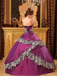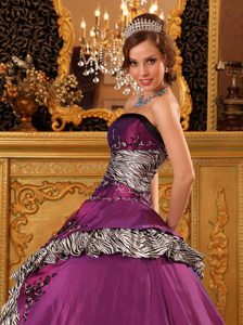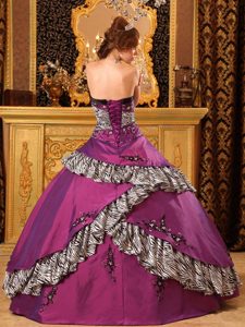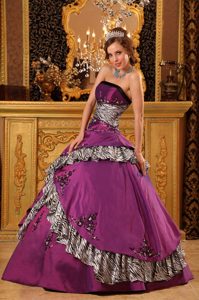 impressive appliqued quinceanera dress in mendoza, Purple Taffeta Quinceanera Dress with Zebra Print Layers and Embroidery