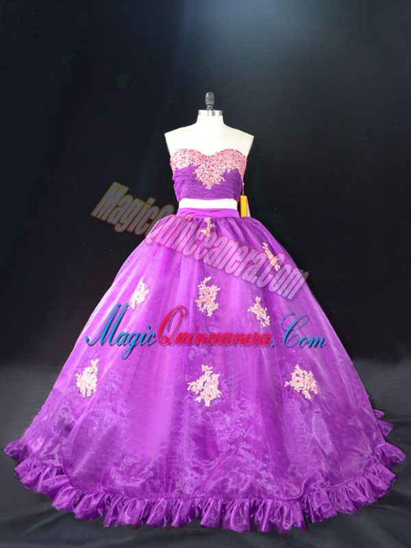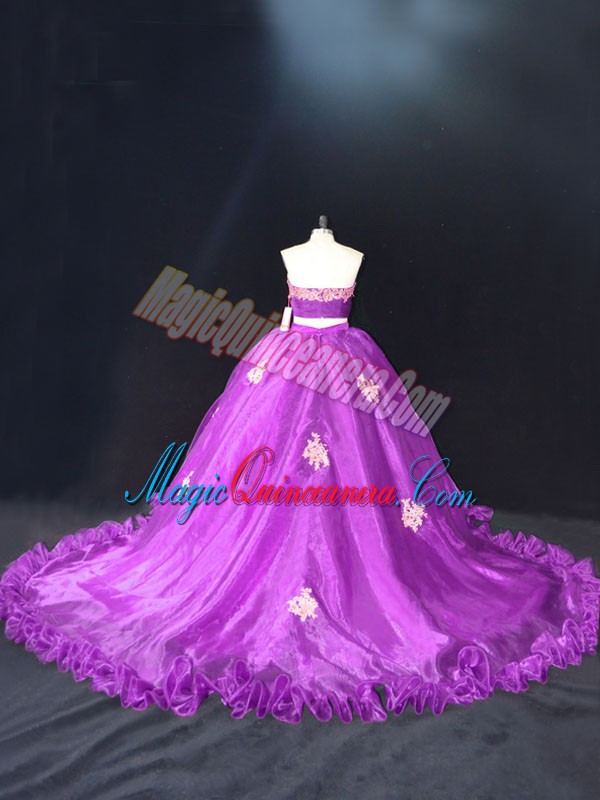 Purple Zipper Quinceanera Dress Appliques Sleeveless Brush Train