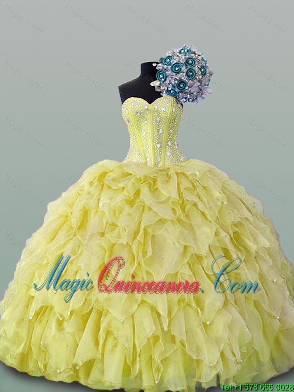 extravagant organza gold quinceañera dresses designs,